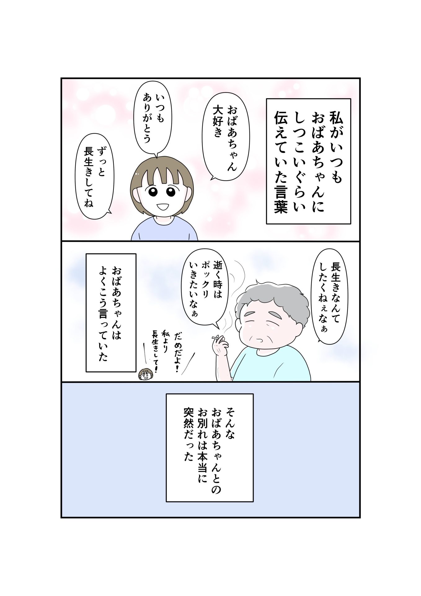 ワイルドなところも優しいところも 2026.02.26 育児漫画 おばあちゃんとの 思い出をいつか描きたいなぁと思っていたので心を込めて描きました✨ 広告 広告 おばあちゃんの 孫で本当に幸せです👵✨ 12 同じカテゴリの記事 子どもがつける名前が大好き(定期) 急に心配になる お…うぉっ、おおお 3歳児の朝 ワイルドなところも優しいところも 恵方巻き大好き漫画 セーブボタン 感情ジェットコースター 前跳び対決 ネイルは最強 悪意のないナイフ カフェラテ おばあちゃんの友達 恐竜の名前 不器用スキンケア 良さがわかる令和キッズ 初めてのグランピング(最終話) 初めてのグランピング⑦ 初めてのグランピング⑥ 初めてのグランピング⑤ 初めてのグランピング④ 初めてのグランピング③ 初めてのグランピング② 初めてのグランピング① 整体での出来事 何をしているのでしょう? 天ぷら何揚げたい?【後編】 天ぷら何揚げたい?【前編】 けん玉にはまった小学生 書籍制作裏話【番外編】 書籍制作裏話【後編】 書籍制作裏話【中編】 書籍制作裏話【前編】 声を大にして言いたいこと 試し読み4話 試し読み3話 書籍試し読み2話 書籍試し読み1話 夫にリップ買ってきてと頼んだら… 紅白饅頭を◯◯◯だと思った2歳児 一年生になりました! 兄の優しさ 子どものネーミングセンスが大好きすぎる 思い出の… 抜けた乳歯どうする? 2025年目標など ポンコツな私が繰り返してしまう失敗 育児漫画描いてて良かったと思った事 育児中泣きそうになる場面 不器用そうはは。の料理苦手あるある らいくんのお返事 イスに座っただけなのに もしもお母さんが倒れたらどうする?って聞いてみたら… 他人軸人生やめました 何が正解かわからなくなった話 車の名は ハッピーになる言葉 長男と2人でお出かけした話(後編) 長男と2人でお出かけした話(中編) 長男と2人でお出かけした話(前編) しりとりが難しい世界 クラクションの理由 らいくん1歳誕生日レポ しくじり母ちゃん断乳レポ(最終話) しくじり母ちゃんの断乳レポ(9) 思ってたのと違う販売写真 しくじり母ちゃんの断乳レポ(8) しくじり母ちゃんの断乳レポ(7) 言わんこっちゃない しくじり母ちゃんの断乳レポ(6) しくじり母ちゃんの断乳レポ(5) しくじり母ちゃんの断乳レポ(4) しくじり母ちゃんの断乳レポ(3) しくじり母ちゃん断乳レポ(2) しくじり母ちゃんの断乳レポ(1) これの対策ってありますか? 気になる給食のお魚 推しを見つけた1歳児の反応 必死に撮った写真にうつったもの… 兄弟初めて握手をした結果 次男出産レポ(18)最終話 次男出産レポ(17) 次男出産レポ(16) 次男出産レポ(15) 新年の挨拶と抱負 2023年ありがとうございました! 次男出産レポ(14) 次男出産レポ(13) 次男出産レポ(12) 次男出産レポ(11) 次男出産レポ(10) 次男出産レポ(9) 次男出産レポ(8) 次男出産レポ(7) 次男出産レポ(6) 次男出産レポ(5) 次男出産レポ(4) 次男出産レポ(3) 次男出産レポ(2) 次男出産レポ(1) 笑ってはいけない育児24時(そうくん編) 笑ってはいけない24時(らいくん編) 長男出産レポ(10)最終話 長男出産レポ(9) 長男出産レポ(8) 長男出産レポ(7) 長男出産レポ(6) 長男出産レポ(5) 長男出産レポ(4) 長男出産レポ(3) 長男出産レポ(2) 長男出産レポ(1) 夫に怒っていたけど怒りがふっとんだ話 能力者なの…? 感動した話 あんドーナツを初めて食べた3歳児の反応 夫が転職した話③ 夫が転職した話② 夫が転職した話① カオスな状況を変える─6秒で── お食い初めをお店でした話(後編) お食い初めをお店でした話(前編) らいくん特集 効果抜群だった話 臨月でコロナ陽性になった話⑥最終話 臨月でコロナ陽性になった話⑤ 臨月でコロナ陽性になった話④ 臨月でコロナ陽性になった話③ 臨月でコロナ陽性になった話② 臨月でコロナ陽性になった話① みかん缶ゼリー作った話 今日だけ頑張ろう! 名曲がグサグサ刺さる かけつけたら… 七夕の願い事 ホワホワチンバアイとは… 無駄な努力? 夢にときめけ明日にきらめけ らいくん初登場 そうくんの前歯の理由 へこ 優しいお兄ちゃん そうくんのほっぺ ママが〇〇に見えたんだね… 想像以上にしっかりしてた えぐってくる息子の言葉 圧倒的幸せ 帰らないと言われたら… 宇宙に帰る。 おもちゃとのお別れ 言い間違い 独特 とどのつまり妊娠中あるある バレンタインのチョコ作り 思春期母ちゃん 節分でオニが来たときの話 息子の絵を見て気づいた事 きゅんきゅんエピソード 空前絶後のケーキな日 あなたならどうする? パパのお腹の中に入ってるのは… 自分の顔にドン引きして忘れた事 育児難しすぎ問題 チョコワでおもてなし 素敵な人と出会った話 小さなヒーロー いびきの止め方 そうくんの大好きな人 らいくんの名前の由来 お腹に赤ちゃんがいる事を伝えたら 子を見守る不審者 ハンバーガーの味は… 言葉が話せても話せなくても つわり中に食べられそうなもの 何に見えますか? 一個二個 けつふいて マスクしてても誰だかわかるように マスクをつけると浮腫みが隠れる マミーピッグと呼ばれ