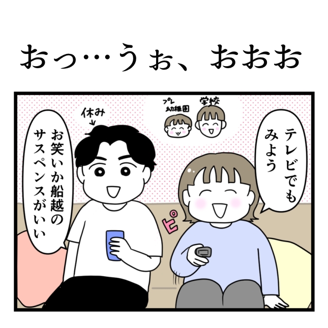 お…うぉっ、おおお 2026.03.13 育児漫画 子ども達が 学校に幼稚園、そうちちは休みだったのでテレビを見てました☺️ 広告 広告 おさむちゃんでええす! 言いたくなりますよね😂 面白かったです☺️ 5 同じカテゴリの記事 子どもがつける名前が大好き(定期) 急に心配になる お…うぉっ、おおお 3歳児の朝 ワイルドなところも優しいところも 恵方巻き大好き漫画 セーブボタン 感情ジェットコースター 前跳び対決 ネイルは最強 悪意のないナイフ カフェラテ おばあちゃんの友達 恐竜の名前 不器用スキンケア 良さがわかる令和キッズ 初めてのグランピング(最終話) 初めてのグランピング⑦ 初めてのグランピング⑥ 初めてのグランピング⑤ 初めてのグランピング④ 初めてのグランピング③ 初めてのグランピング② 初めてのグランピング① 整体での出来事 何をしているのでしょう? 天ぷら何揚げたい?【後編】 天ぷら何揚げたい?【前編】 けん玉にはまった小学生 書籍制作裏話【番外編】 書籍制作裏話【後編】 書籍制作裏話【中編】 書籍制作裏話【前編】 声を大にして言いたいこと 試し読み4話 試し読み3話 書籍試し読み2話 書籍試し読み1話 夫にリップ買ってきてと頼んだら… 紅白饅頭を◯◯◯だと思った2歳児 一年生になりました! 兄の優しさ 子どものネーミングセンスが大好きすぎる 思い出の… 抜けた乳歯どうする? 2025年目標など ポンコツな私が繰り返してしまう失敗 育児漫画描いてて良かったと思った事 育児中泣きそうになる場面 不器用そうはは。の料理苦手あるある らいくんのお返事 イスに座っただけなのに もしもお母さんが倒れたらどうする?って聞いてみたら… 他人軸人生やめました 何が正解かわからなくなった話 車の名は ハッピーになる言葉 長男と2人でお出かけした話(後編) 長男と2人でお出かけした話(中編) 長男と2人でお出かけした話(前編) しりとりが難しい世界 クラクションの理由 らいくん1歳誕生日レポ しくじり母ちゃん断乳レポ(最終話) しくじり母ちゃんの断乳レポ(9) 思ってたのと違う販売写真 しくじり母ちゃんの断乳レポ(8) しくじり母ちゃんの断乳レポ(7) 言わんこっちゃない しくじり母ちゃんの断乳レポ(6) しくじり母ちゃんの断乳レポ(5) しくじり母ちゃんの断乳レポ(4) しくじり母ちゃんの断乳レポ(3) しくじり母ちゃん断乳レポ(2) しくじり母ちゃんの断乳レポ(1) これの対策ってありますか? 気になる給食のお魚 推しを見つけた1歳児の反応 必死に撮った写真にうつったもの… 兄弟初めて握手をした結果 次男出産レポ(18)最終話 次男出産レポ(17) 次男出産レポ(16) 次男出産レポ(15) 新年の挨拶と抱負 2023年ありがとうございました! 次男出産レポ(14) 次男出産レポ(13) 次男出産レポ(12) 次男出産レポ(11) 次男出産レポ(10) 次男出産レポ(9) 次男出産レポ(8) 次男出産レポ(7) 次男出産レポ(6) 次男出産レポ(5) 次男出産レポ(4) 次男出産レポ(3) 次男出産レポ(2) 次男出産レポ(1) 笑ってはいけない育児24時(そうくん編) 笑ってはいけない24時(らいくん編) 長男出産レポ(10)最終話 長男出産レポ(9) 長男出産レポ(8) 長男出産レポ(7) 長男出産レポ(6) 長男出産レポ(5) 長男出産レポ(4) 長男出産レポ(3) 長男出産レポ(2) 長男出産レポ(1) 夫に怒っていたけど怒りがふっとんだ話 能力者なの…? 感動した話 あんドーナツを初めて食べた3歳児の反応 夫が転職した話③ 夫が転職した話② 夫が転職した話① カオスな状況を変える─6秒で── お食い初めをお店でした話(後編) お食い初めをお店でした話(前編) らいくん特集 効果抜群だった話 臨月でコロナ陽性になった話⑥最終話 臨月でコロナ陽性になった話⑤ 臨月でコロナ陽性になった話④ 臨月でコロナ陽性になった話③ 臨月でコロナ陽性になった話② 臨月でコロナ陽性になった話① みかん缶ゼリー作った話 今日だけ頑張ろう! 名曲がグサグサ刺さる かけつけたら… 七夕の願い事 ホワホワチンバアイとは… 無駄な努力? 夢にときめけ明日にきらめけ らいくん初登場 そうくんの前歯の理由 へこ 優しいお兄ちゃん そうくんのほっぺ ママが〇〇に見えたんだね… 想像以上にしっかりしてた えぐってくる息子の言葉 圧倒的幸せ 帰らないと言われたら… 宇宙に帰る。 おもちゃとのお別れ 言い間違い 独特 とどのつまり妊娠中あるある バレンタインのチョコ作り 思春期母ちゃん 節分でオニが来たときの話 息子の絵を見て気づいた事 きゅんきゅんエピソード 空前絶後のケーキな日 あなたならどうする? パパのお腹の中に入ってるのは… 自分の顔にドン引きして忘れた事 育児難しすぎ問題 チョコワでおもてなし 素敵な人と出会った話 小さなヒーロー いびきの止め方 そうくんの大好きな人 らいくんの名前の由来 お腹に赤ちゃんがいる事を伝えたら 子を見守る不審者 ハンバーガーの味は… 言葉が話せても話せなくても つわり中に食べられそうなもの 何に見えますか? 一個二個 けつふいて マスクしてても誰だかわかるように マスクをつけると浮腫みが隠れる マミーピッグと呼ばれ